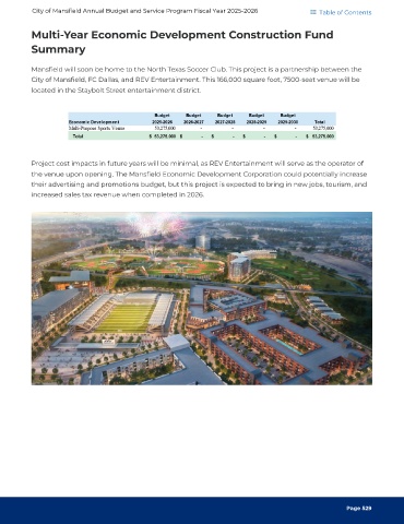 the venue upon opening. The Mansfield Economic Development Corporation could potentially increase