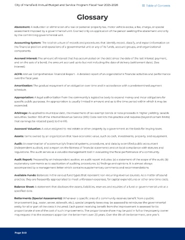 City of Mansfield Annual Budget and Service Program Fiscal Year 2025-2026 Table of Contents