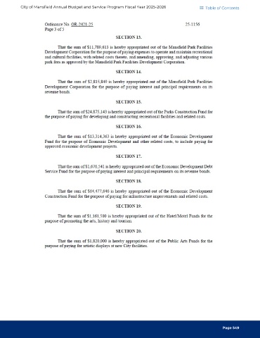 City of Mansfield Annual Budget and Service Program Fiscal Year 2025-2026 Table of Contents Page 549