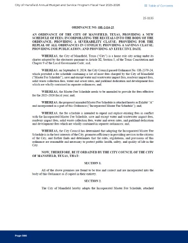 City of Mansfield Annual Budget and Service Program Fiscal Year 2025-2026 Table of Contents Page 566