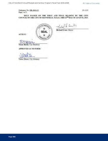 City of Mansfield Annual Budget and Service Program Fiscal Year 2025-2026 Table of Contents Page 568