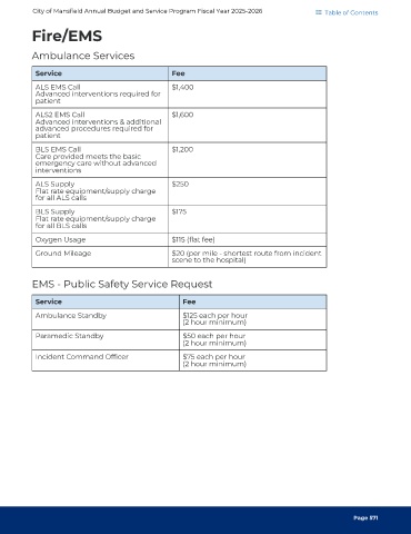 City of Mansfield Annual Budget and Service Program Fiscal Year 2025-2026 Table of Contents