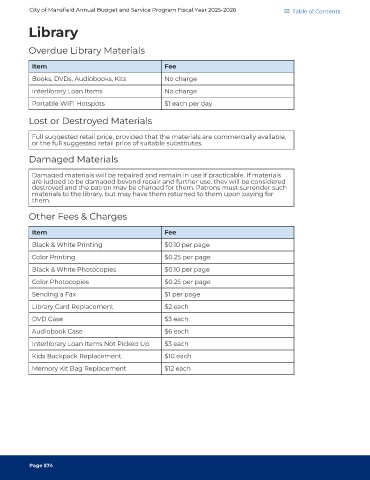 City of Mansfield Annual Budget and Service Program Fiscal Year 2025-2026 Table of Contents