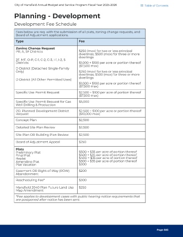 City of Mansfield Annual Budget and Service Program Fiscal Year 2025-2026 Table of Contents