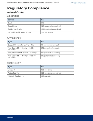 City of Mansfield Annual Budget and Service Program Fiscal Year 2025-2026 Table of Contents