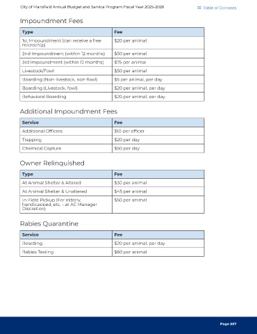 City of Mansfield Annual Budget and Service Program Fiscal Year 2025-2026 Table of Contents