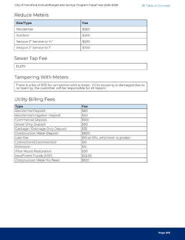 City of Mansfield Annual Budget and Service Program Fiscal Year 2025-2026 Table of Contents