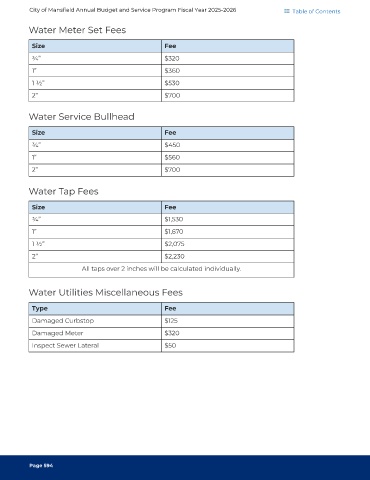 City of Mansfield Annual Budget and Service Program Fiscal Year 2025-2026 Table of Contents