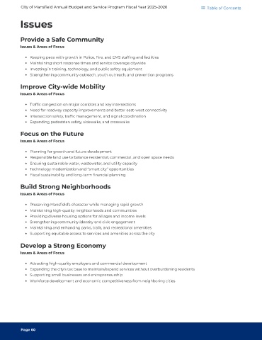 City of Mansfield Annual Budget and Service Program Fiscal Year 2025-2026 Table of Contents