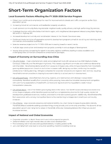 City of Mansfield Annual Budget and Service Program Fiscal Year 2025-2026 Table of Contents