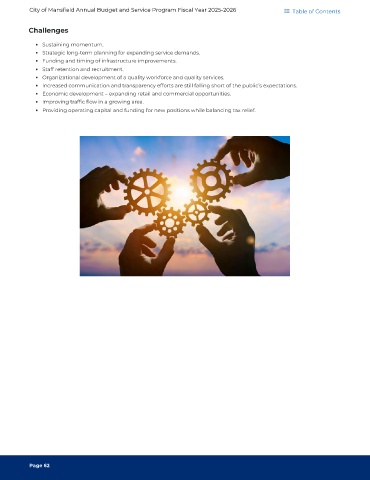 City of Mansfield Annual Budget and Service Program Fiscal Year 2025-2026 Table of Contents