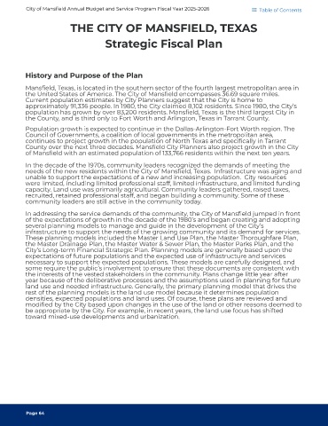 City of Mansfield Annual Budget and Service Program Fiscal Year 2025-2026 Table of Contents