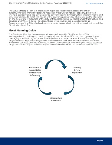 The City’s Strategic Plan is a fiscal planning model that encompasses the other
