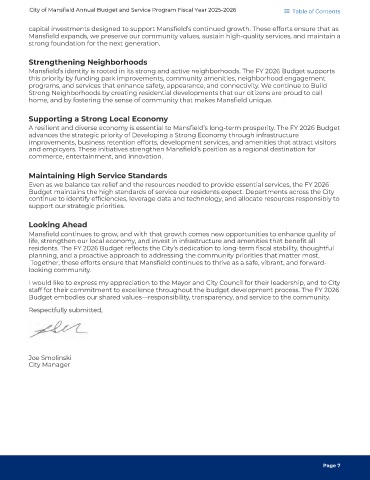 City of Mansfield Annual Budget and Service Program Fiscal Year 2025-2026 Table of Contents