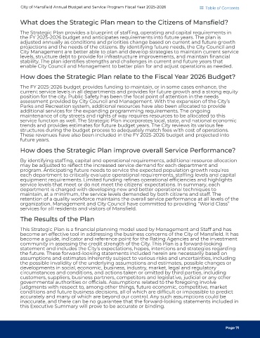 City of Mansfield Annual Budget and Service Program Fiscal Year 2025-2026 Table of Contents