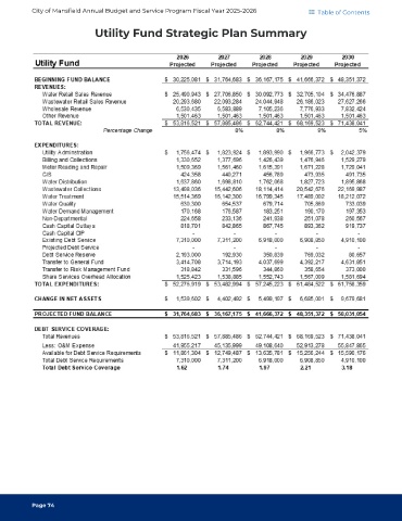 City of Mansfield Annual Budget and Service Program Fiscal Year 2025-2026 Table of Contents Utility Fund Strategic Plan Summary Page 74