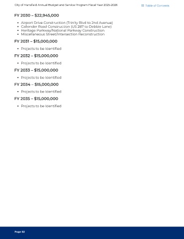 City of Mansfield Annual Budget and Service Program Fiscal Year 2025-2026 Table of Contents
