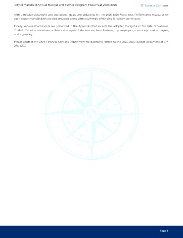 City of Mansfield Annual Budget and Service Program Fiscal Year 2025-2026 Table of Contents