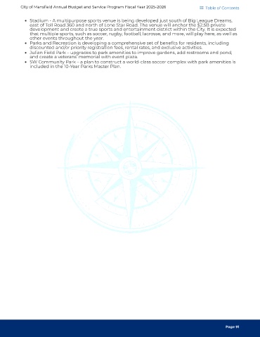 City of Mansfield Annual Budget and Service Program Fiscal Year 2025-2026 Table of Contents