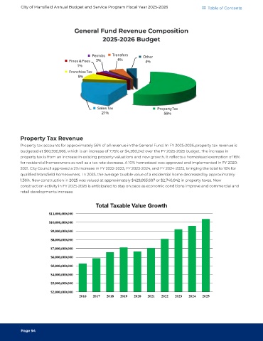 City of Mansfield Annual Budget and Service Program Fiscal Year 2025-2026 Table of Contents