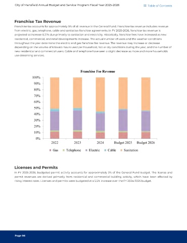 from electric, gas, telephone, cable and sanitation franchise agreements. In FY 2025-2026, franchise tax revenue is