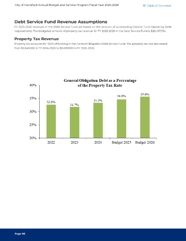 Property tax accounts for 100% of funding in the General Obligation Debt Service Fund. The property tax rate decreased