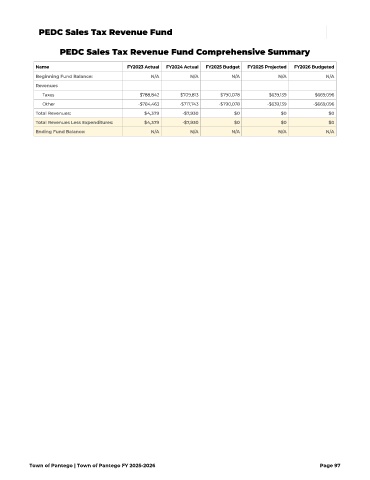 PEDC Sales Tax Revenue Fund Comprehensive Summary