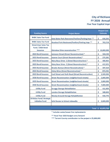 2023 Bond Issuance Mary Boaz Drive- 2 (Street Reconstruction) * $ 412,923 $ 412,923 $ - $ - $ - $ - $ 412,923