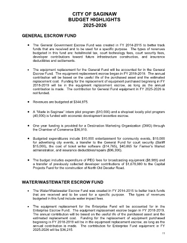 The Water/Wastewater Escrow Fund was created in FY 2014-2015 to better track funds