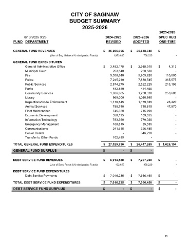 TOTAL GENERAL FUND EXPENDITURES $ 27,029,730 $ 26,447,265 $ 1,026,154