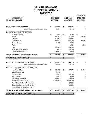 GENERAL ESCROW FUND REVENUES $ 496,475 $ 344,875 $ -