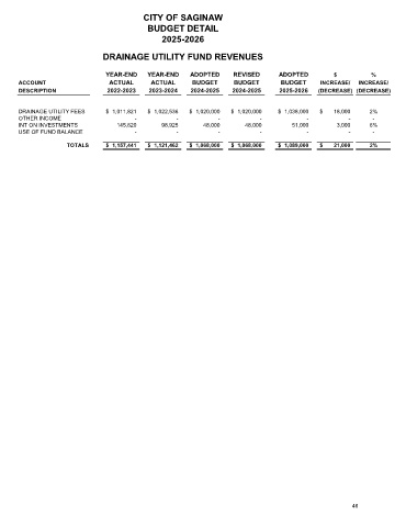DRAINAGE UTILITY FEES $ 1,011,821 $ 1,022,536 $ 1,020,000 $ 1,020,000 $ 1,038,000 $ 18,000 2%