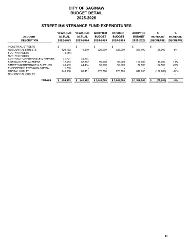 STREET MAINTENANCE & SUPPLIES 35,439 44,434 50,000 50,000 72,500 22,500 45%