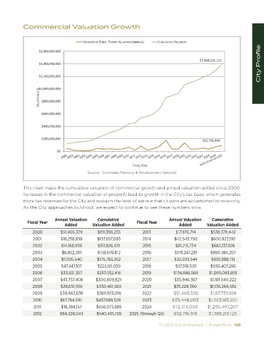 This chart maps the cumulative valuation of commercial growth and annual valuation added since 2000.