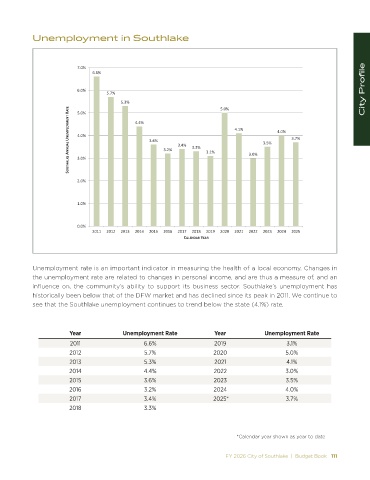 influence on, the community’s ability to support its business sector. Southlake’s unemployment has
