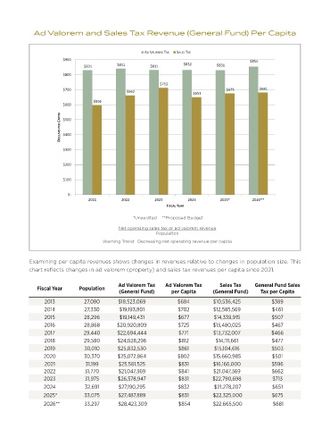 chart reflects changes in ad valorem (property) and sales tax revenues per capita since 2021.