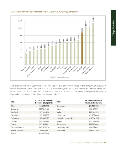 ad valorem taxes per citizen in FY 2025. Southlake budgeted to collect $881 of ad valorem taxes per