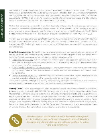budget holds Southlake’s benefit cost at 30.6% of payroll, a slight increase from 30.2% in FY 2025.