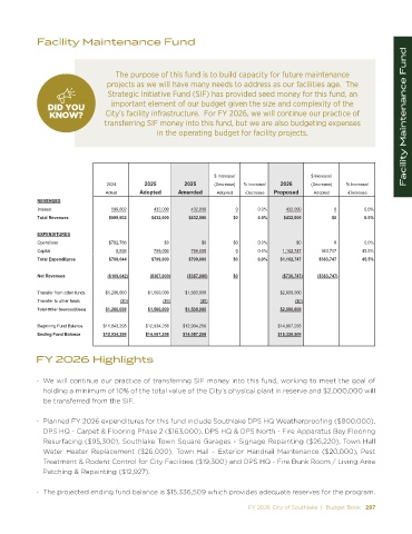 KNOW? City’s facility infrastructure. For FY 2026, we will continue our practice of Facility Maintenance Fund