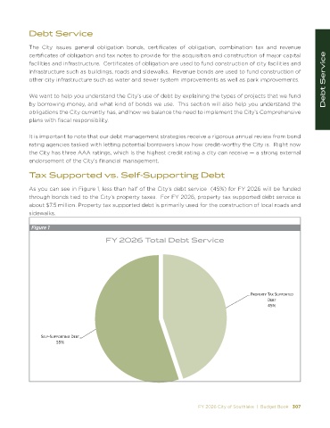 through bonds tied to the City’s property taxes. For FY 2026, property tax supported debt service is