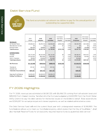 314 FY 2026 City of Southlake | Budget Book FY 2026 City of Southlake | Budget Book 315
