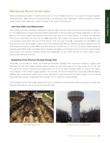 - Alta Vista Water Line Replacement Debt Service