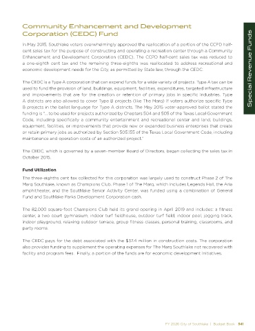 economic development needs for the City, as permitted by State law, through the CEDC. Special Revenue Funds
