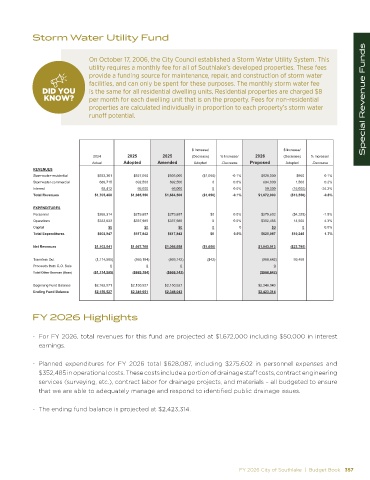 On October 17, 2006, the City Council established a Storm Water Utility System. This