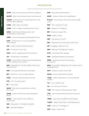 ACFR - Annual Comprehensive Financial Report KSB - Keep Southlake Beautiful