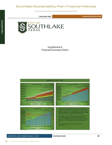 Southlake Sustainability Plan: Financial Wellness [SOUTHLAKE 2030] Sustainability Master Plan Appendix Ordinance No. 1104, Adopted February 17, 2015 [SOUTHLAKE 2030] 65 410 FY 2026 City of Southlake | Budget Book