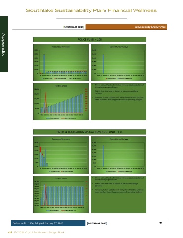 Southlake Sustainability Plan: Financial Wellness [SOUTHLAKE 2030] Sustainability Master Plan Appendix Ordinance No. 1104, Adopted February 17, 2015 [SOUTHLAKE 2030] 71 416 FY 2026 City of Southlake | Budget Book