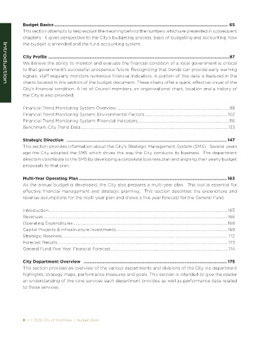 chapters. It gives perspective to the City’s budgeting process, basis of budgeting and accounting, how