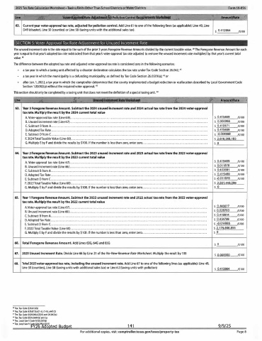 62. Current year voter-approval tax rate, adjusted for pollution control. Add Line 61 to one of the following lines (as applicable): Line 49, Line