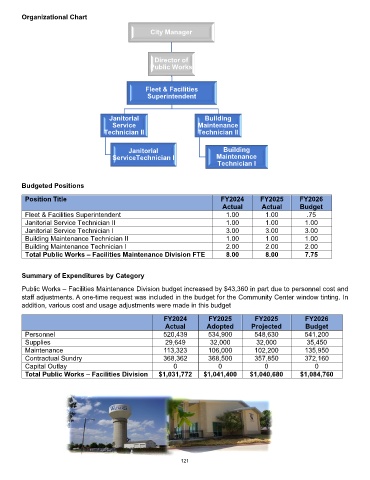 Total Public Works – Facilities Maintenance Division FTE 8.00 8.00 7.75